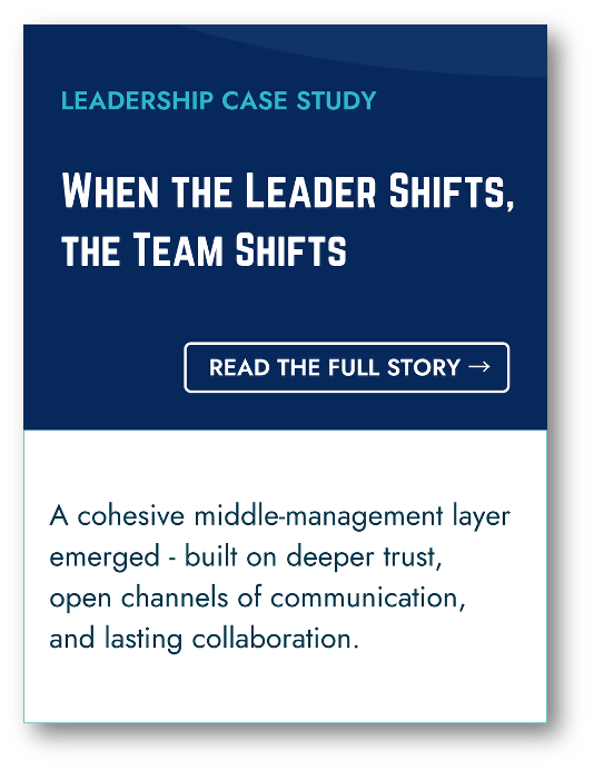 Our Leadership Experience Acceleration Program builds the skills, mindset, and self-awareness leaders need to lead people and build high performing teams. Through cohort-based learning, 1:1 coaching, and focused work on conflict, communication, and change, leaders grow in ways that show up immediately in how their teams work.